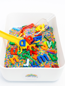 Kids will spend hours exploring the sensory bin and it is not unusual for their imagination to go in a completely different direction each time they play. They will surprise you and come up with their own ideas instead of play how you expected. This is exactly what you want to happen!