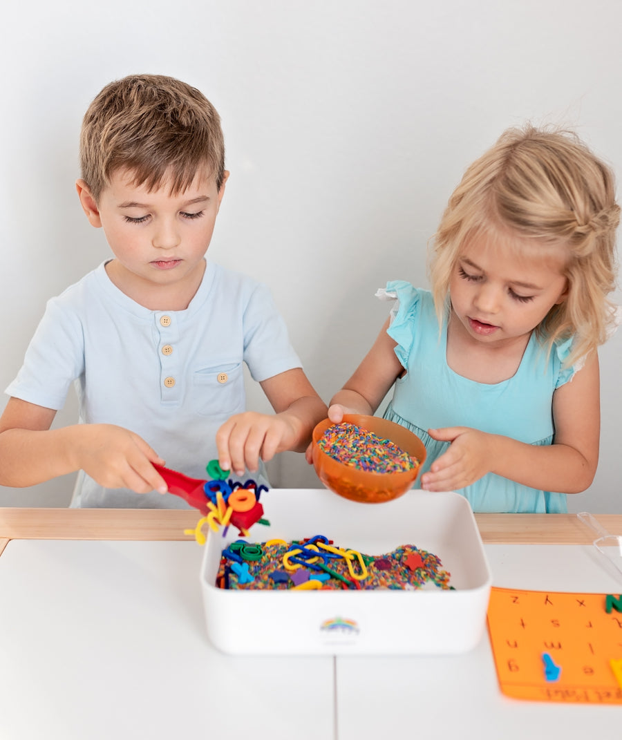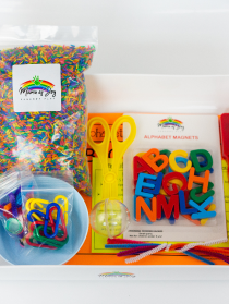 There is no right or wrong way to set up your Mama of Joy Sensory Bins. The pictures shown are a guide. Be as creative as you’d like when setting up your sensory bin! Sensory play should be about the fun and experience. All learning will follow and occur naturally.